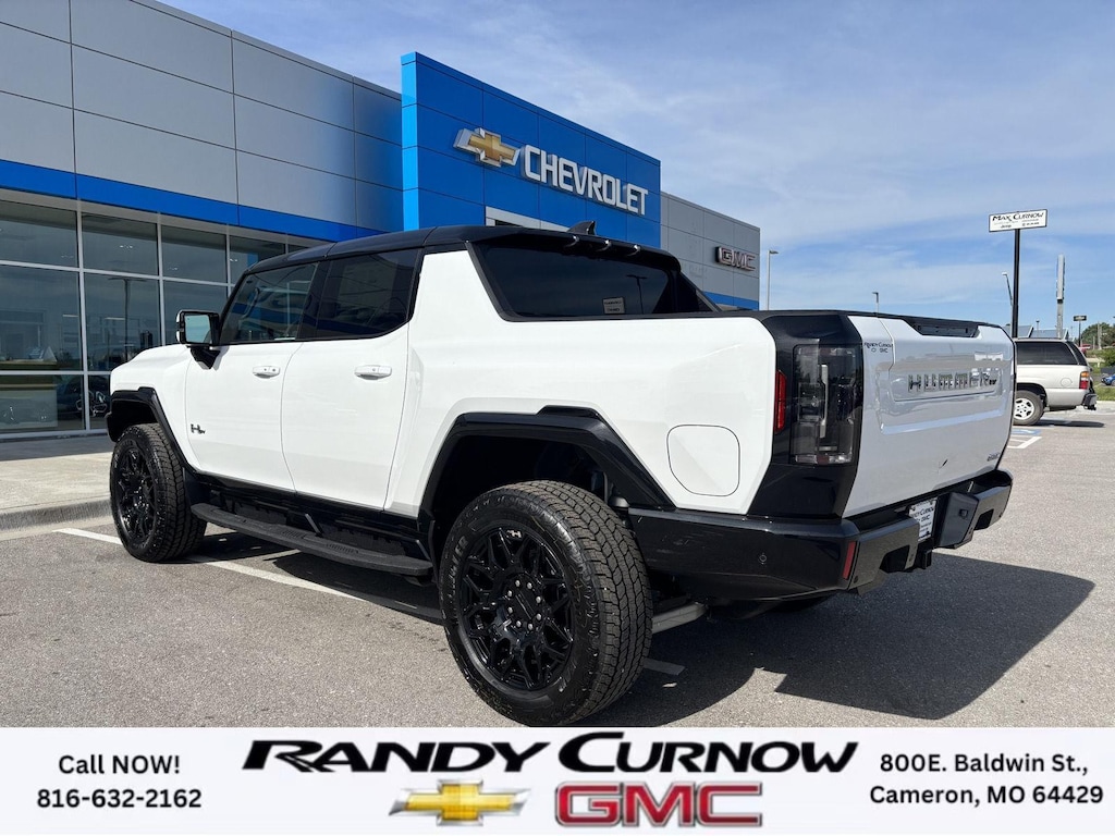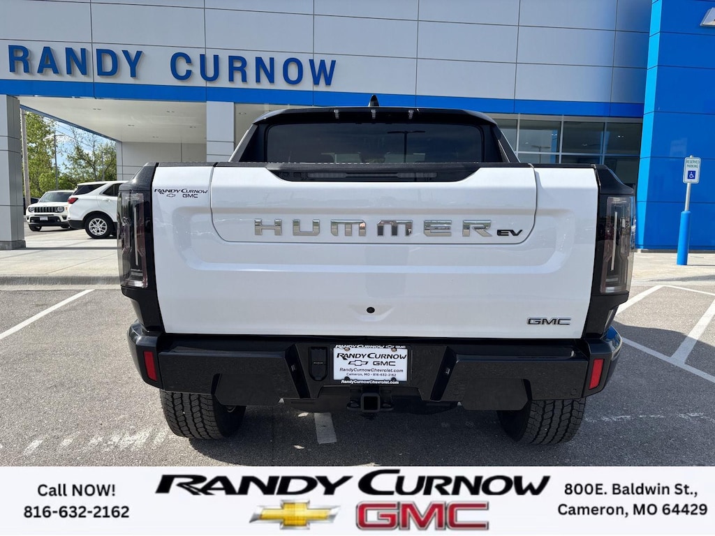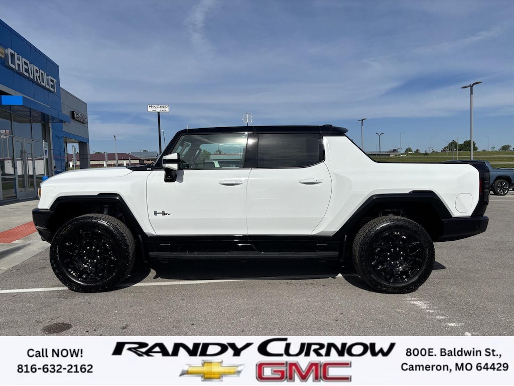 This 2025 GMC HUMMER EV Pickup 2X, has a Interstellar White exterior with a Lunar Horizon (Jet Black/Light Grey) interior. Call us at 816-632-2162 and reference stock Number 7639 for further details. IMPORTANT PACKAGE INFORMATION: Preferred Equipment Group 1SC Convenience The cruise control accesses camera, radar and/or GPS satellite data, to automatically determine if it should slow for a curve in the road ahead.Safety and Security The vehicle is equipped with a system that senses, and then prepares, the vehicle and/or occupants, for an impending forward collision. The vehicle constantly monitors the roadway in front of the vehicle and identifies and tracks pedestrians on an interior display. If the system determines a likely impact, it will automatically take preventative steps to avoid hitting the pedestrian. A system of this type allows the driver to travel for extended periods of time without providing steering input to the vehicle, however they must be ready to resume control of the vehicle at any point. With the cruise control on, engage the turn-signal and the vehicle will automatically change lanes at the first safe opportunity, without any further input from the driver.Technology and Telematics Apple CarPlay/Android Auto smart device wireless mirroring OTHER NOTABLE FEATURES AND OPTIONS YOU SHOULD KNOW ABOUT: Emission system zero emission vehicle (ZEV), Front Drive Unit, 1-motor, Integrated Inverter, Park System, Rear Drive Unit, 1-motor, Integrated Inverter, Electronic Precision Shift, electronic transmission range selector with Low selection for throttle off regenerative braking and one-pedal driving capability, Drive Mode Control includes My Mode, Normal, Off-Road, Terrain and Tow/Haul, DC fast charging, 800 volt, up to 300 kW, Trailering Package includes trailer hitch, 7-pin connector and (CTT) Hitch Guidance, Hitch Guidance, Tow/Haul Mode, Suspension, Adaptive Air Ride, front and rear with adjustable ride height and Extract Mode, Steering, electronic 4-wheel with CrabWalk diagonal-drive functionality at low speeds, Brake, electronic parking, Power Hood, eTrunk lit compartment with Infinity Roof Sky Panel storage capability, cargo tie-downs (4 rated at 110 lbs.) and 12-volt power outlet, Roof accessory points front, mid and rear for accessories and roof cross rails, Infinity Roof, with removable opaque Sky Panels (includes 4 storage bags, and Front I-Bar is removable), Active aero shutters, upper and lower, Lighting, front signature includes HUMMER EV light bar, walk-up and departure animation, charge status and turn signals, IntelliBeam, automatic high beam on/off, Lighting, rear charge port illuminated charge status, Wipers, 3 front intermittent, Rainsense, Window, front side, solar absorbing, Pickup bed, (5-foot), Cargo tie downs, (8) fixed, rated at 500 lbs., Power outlet, bed mounted 120-volt (400 watts shared with (KI4) console mounted power outlet), Tire Inflator Kit, Tailgate, GMC MultiPro Tailgate with six functional load/access features, Tailgate, gate function manual with EZ Lift includes power lock and release, Wi-Fi Hotspot capable (Terms and limitations apply. See onstar.com or dealer for details.), Steering wheel audio controls, Seat adjuster, driver 12-way power including 4-way lumbar, Seats, heated second row outboard seats, Rear Seat with Storage Package, 60/40 folding bench includes full-length bench seat, seatback storage on left and right side, center fold out armrest with 2 cupholders, (includes child seat top tether anchor), Steering wheel, premium, Steering wheel, heated, Steering column, power tilt and telescoping, Remote vehicle starter system, pre-conditioning, Universal Home Remote, Power outlet, rear center console, 120-volt (400 watts shared with (KC9) bed mounted power outlet), USB ports, rear, dual, charge-only, Wireless Phone Charging (Not compatible with all phones. Compliant batteries include QI and PMA technologies. Reference Mobile devices manual to confirm what type of batter