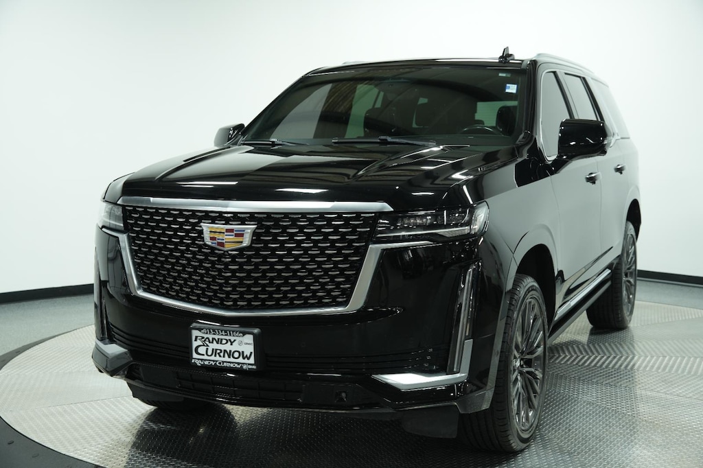 This 2022 Cadillac Escalade Premium Luxury, has a Black Raven exterior with a Parchment with Jet Black accents interior. Call us at 913-601-5486 and reference stock Number 112386B for further details. IMPORTANT PACKAGE INFORMATION: Performance Package ($2,700 value)Electronic Limited-Slip DifferentialIntegrated Trailer Brake ControllerHitch Guidance with Hitch ViewSmart Trailer Integration IndicatorTrailer Side Blind Zone AlertMagnetic Ride Control SuspensionTouring Package ($2,550 value)Soft Closing Front and Rear DoorsIlluminating Front and Rear Sill PlatesAir Ride Adaptive SuspensionPreferred Equipment Group 1SBAutomatic Seat Belt TighteningRunning Board Assist StepsPower Panoramic Tilt-Sliding SunroofRear Camera Mirror WasherRear Camera MirrorStop/start System Disable ButtonAutomatic Stop/startAdaptive Cruise ControlSingle-Speed Active Transfer CaseDoor Lock and Latch Shields22" 14-Spoke Alloy Wheels with Polished FinishRear Cross Traffic AlertEnhanced Automatic Emergency BrakingLane Change Alert with Side Blind Zone AlertEnhanced Automatic Parking AssistAKG Studio 19-Speaker Audio SystemTheft-Deterrent Alarm SystemVehicle Inclination SensorVehicle Interior Movement SensorGlass Breakage SensorReconfigurable Full-Color Head-Up DisplayReverse Automatic BrakingHeavy-Duty Trailering Package ($600 value)2-Speed Active Transfer CaseTrailer Tire Pressure Monitoring SystemTrailering Assist GuidelinesWired Auxiliary Trailer CameraExtra Capacity Cooling System Safety and Security Night vision supplements the vehicle's headlights by detecting infrared energy being radiated by objects ahead of the vehicle to project an image on a heads up display (HUD) or screen. The vehicle is equipped with a system that senses, and then prepares, the vehicle and/or occupants, for an impending forward collision. The vehicle constantly monitors the roadway in front of the vehicle and identifies and tracks pedestrians on an interior display. If the system determines a likely impact, it will automatically take preventative steps to avoid hitting the pedestrian.Technology and Telematics Android Auto/Apple CarPlay smart device wireless mirroring Apple CarPlay/Android Auto smart device wireless mirroring OTHER NOTABLE FEATURES AND OPTIONS YOU SHOULD KNOW ABOUT: EMISSIONS, FEDERAL REQUIREMENTS, ENGINE, 6.2L V8 WITH DYNAMIC FUEL MANAGEMENT, TRANSMISSION, 10-SPEED AUTOMATIC, GVWR, 7600 LBS. (3447 KG), REAR AXLE, 3.23 RATIO, WHEELS, 22" (55.9 CM) 14-SPOKE ALLOY WITH POLISHED FINISH, BLACK RAVEN, SEATS, FRONT BUCKET, SEATS, SECOND ROW BUCKET, POWER RELEASE, PARCHMENT WITH JET BLACK ACCENTS, LEATHER SEATING SURFACES WITH MINI-CHEVRON PERFORATED INSERTS, OLED INFOTAINMENT EXPERIENCE WITH NAVIGATION, TOURING PACKAGE, PERFORMANCE PACKAGE, HEAVY-DUTY TRAILERING PACKAGE, TRANSFER CASE, ACTIVE, 2-SPEED, PUSH-BUTTON CONTROLS, DIFFERENTIAL, ELECTRONIC LIMITED-SLIP, COOLING SYSTEM, EXTRA CAPACITY, TRAILER BRAKE CONTROLLER, INTEGRATED, TRAILERING ASSIST GUIDELINES, HITCH GUIDANCE WITH HITCH VIEW, SMART TRAILER INTEGRATION INDICATOR, TRAILER TIRE PRESSURE MONITORING SYSTEM, SUSPENSION, AIR RIDE ADAPTIVE, SUSPENSION, MAGNETIC RIDE CONTROL, ASSIST STEPS, POWER-RETRACTABLE WITH PERIMETER LIGHTING, NOT EQUIPPED WITH 4-WAY DRIVER AND FRONT PASSENGER POWER LUMBAR, SILL PLATES, ILLUMINATING, FRONT AND REAR, NOT EQUIPPED WITH STEERING COLUMN LOCK, DOORS, FRONT AND REAR, SOFT-CLOSE, SUPER CRUISE, LPO, AUXILIARY TRAILER CAMERA, WIRED, NIGHT VISION, TRAILER SIDE BLIND ZONE ALERT SERVING OUR FRIENDS AND NEIGHBORS IN KANSAS CITY At Randy Curnow Buick GMC, we're more than just a car dealership in Kansas City. We're also members of the greater Olathe, Overland Park, Summit and Leavenworth communities, who work and live here just like you, and we want only what's best for our neighbors. We strive to support community initiatives and events, and we're committed to delivering the best customer service around, from new Buick and GMC sales, to used vehicles, to finance and service. We provide
