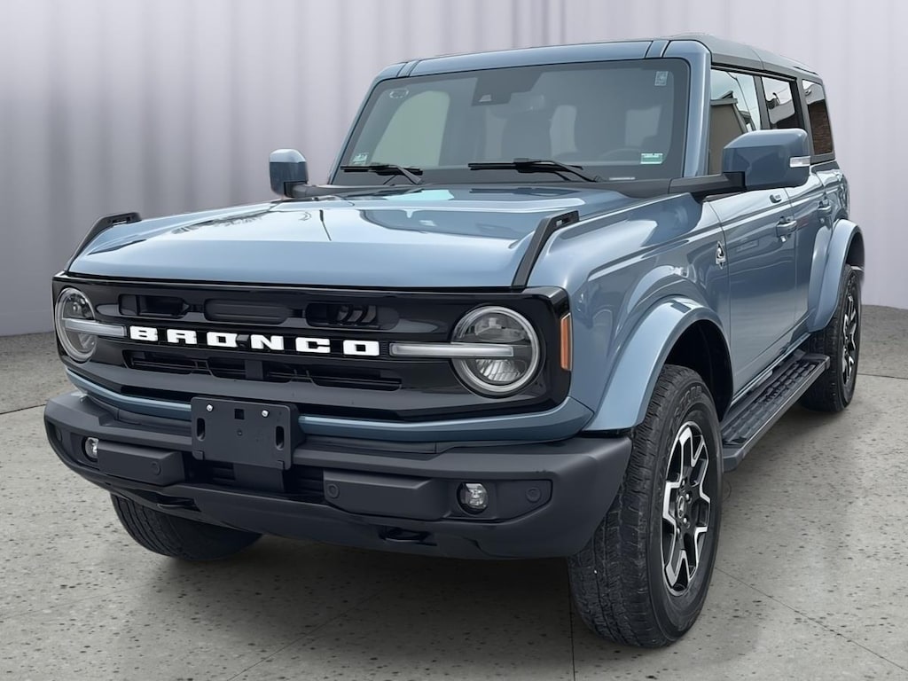 2023 Ford Bronco Outer Banks, has a Azure Gray Metallic Tri-Coat exterior with a Dark Space Gray w/ Navy Pier interior. Call us at 660-240-8249 and reference stock Number 103210B for further details.