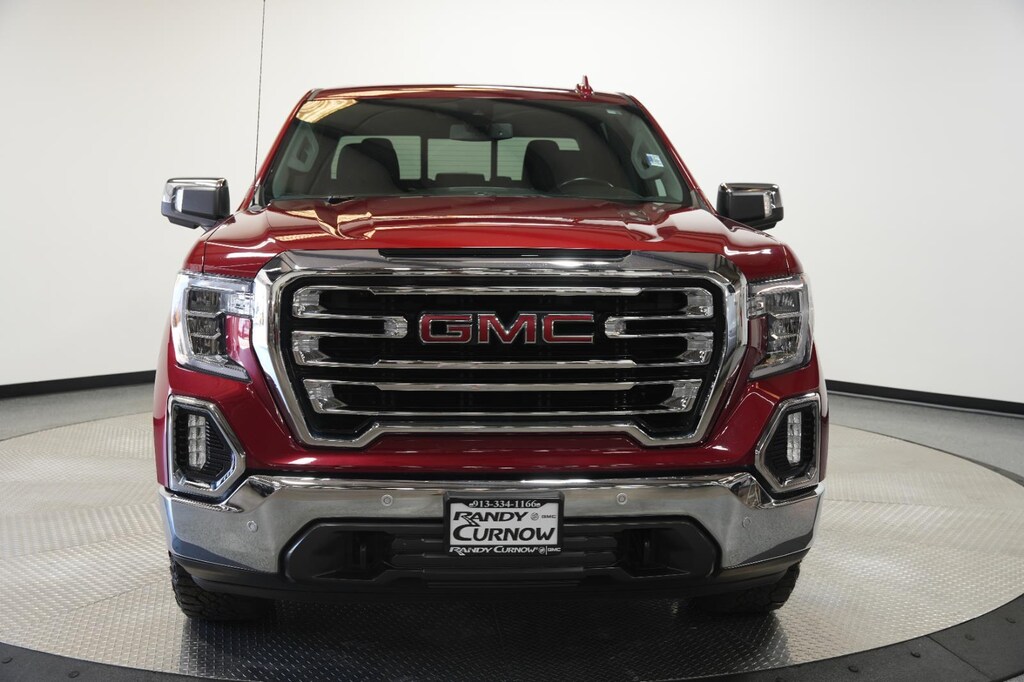 This 2019 GMC Sierra 1500 SLT, has a Red Quartz Tintcoat exterior with a Jet Black interior. Call us at 913-601-5486 and reference stock Number 112553A for further details. IMPORTANT PACKAGE INFORMATION: SLT Convenience PackagePower Sliding Rear Window with Rear DefoggerFront Bucket SeatsFloor Mounted ConsoleHeated 2nd Row Outboard SeatsVentilated Driver and Front Passenger Seats2 USB Ports2 USB Ports (1st Row)Universal Home RemoteDriver Alert Package IPerimeter LightingUltrasonic Front and Rear Park AssistRear Cross Traffic AlertLane Change Alert with Side Blind Zone AlertDriver Alert Package IISafety Alert SeatIntelliBeam Automatic High Beam On/offFollowing Distance IndicatorForward Collision AlertLane Keep Assist with Lane Departure WarningLow Speed Forward Automatic BrakingFront Pedestrian BrakingX31 Off-Road Package ($850 value)Hill Descent ControlHigh-Capacity Air FilterDual Exhaust with Premium Tips2-Speed Transfer CaseSkid PlatesOff-Road SuspensionX31 Hard BadgeSLT Premium Plus Package ($5,875 value)Chrome Assist StepsSpray-On Pickup Bed Liner with GMC Logo20" X 9" Polished Aluminum WheelsTrailer Tire Pressure Monitor SystemPreferred Equipment Group 4SAGMC Connected AccessPower Front Passenger Windows with Express Up/downPower Rear Windows with Express DownDeep-Tinted GlassKeyless Open and StartPower Door LocksPower Front Windows with Driver Express Up/downRear Wheelhouse LinersColor-Keyed Carpeting Floor CoveringRemote Vehicle Starter SystemElectric Rear-Window DefoggerCompassHitch GuidanceHeavy-Duty Rear Locking DifferentialChrome GrilleIntegrated Trailer Brake ControllerHeated Driver and Front Passenger Seating120-Volt Instrument Panel Power OutletAuxiliary External Transmission Oil Cooler12-Volt Rear Auxiliary Power Outlet170 Amp Alternator5.3L EcoTec3 V8 EngineElectrical Lock Control Steering ColumnManual Tilt-Wheel and Telescoping Steering ColumnSingle Speed Transfer CaseHitch Guidance with Hitch ViewIn-Vehicle Trailering AppHD RadioOnStar and GMC Connected Services CapableLED Cargo Area LightingSteering Wheel Audio ControlsRear Dual USB Charging-Only PortsTheft Deterrent System (unauthorized Entry)Front Frame-Mounted Black Recovery HooksGMC 4G LTETrailering PackageSLT Preferred PackagePremium GMC Infotainment System Radio with NavigationWireless ChargingPremium Bose 7-Speaker Sound System Safety and Security The vehicle is equipped with a system that senses, and then prepares, the vehicle and/or occupants, for an impending forward collision. The vehicle constantly monitors the roadway in front of the vehicle and identifies and tracks pedestrians on an interior display. If the system determines a likely impact, it will automatically take preventative steps to avoid hitting the pedestrian. The vehicle is equipped with a camera that displays an image of the area behind the vehicle on an interior display.Technology and Telematics Without the need for a manufacturer specific app to be installed on the smart device, the vehicle infotainment system can access and control functions of a smart device physically plugged-into the vehicle. Mobile devices can wirelessly connect to the internet through the vehicle's private mobile network. OTHER NOTABLE FEATURES AND OPTIONS YOU SHOULD KNOW ABOUT: EMISSIONS, FEDERAL REQUIREMENTS, ENGINE, 5.3L ECOTEC3 V8, TRANSMISSION, 8-SPEED AUTOMATIC, ELECTRONICALLY CONTROLLED, GVWR, 7100 LBS. (3221 KG), REAR AXLE, 3.23 RATIO, WHEELS, 20" X 9" (50.8 CM X 22.9 CM) POLISHED ALUMINUM, TIRES, 275/60R20SL ALL-TERRAIN, BLACKWALL, RED QUARTZ TINTCOAT, SEATS, FRONT BUCKET, JET BLACK, PERFORATED LEATHER-APPOINTED SEAT TRIM, AUDIO SYSTEM, PREMIUM GMC INFOTAINMENT SYSTEM WITH NAVIGATION AND 8" DIAGONAL COLOR TOUCH-SCREEN, INCLUDES MULTI-TOUCH DISPLAY, AM/FM STEREO, SLT PREMIUM PLUS PACKAGE, X31 OFF-ROAD PACKAGE, SLT CONVENIENCE PACKAGE, SLT PREFERRED PACKAGE, DRIVER ALERT PACKAGE I, DRIVER ALERT PACKAGE II, AIR FILTER, HIGH-CAPACITY, HILL DESCENT CONTROL, TRANSFER CASE, TWO-SPEED, ELECTRONIC AUTOTRAC,