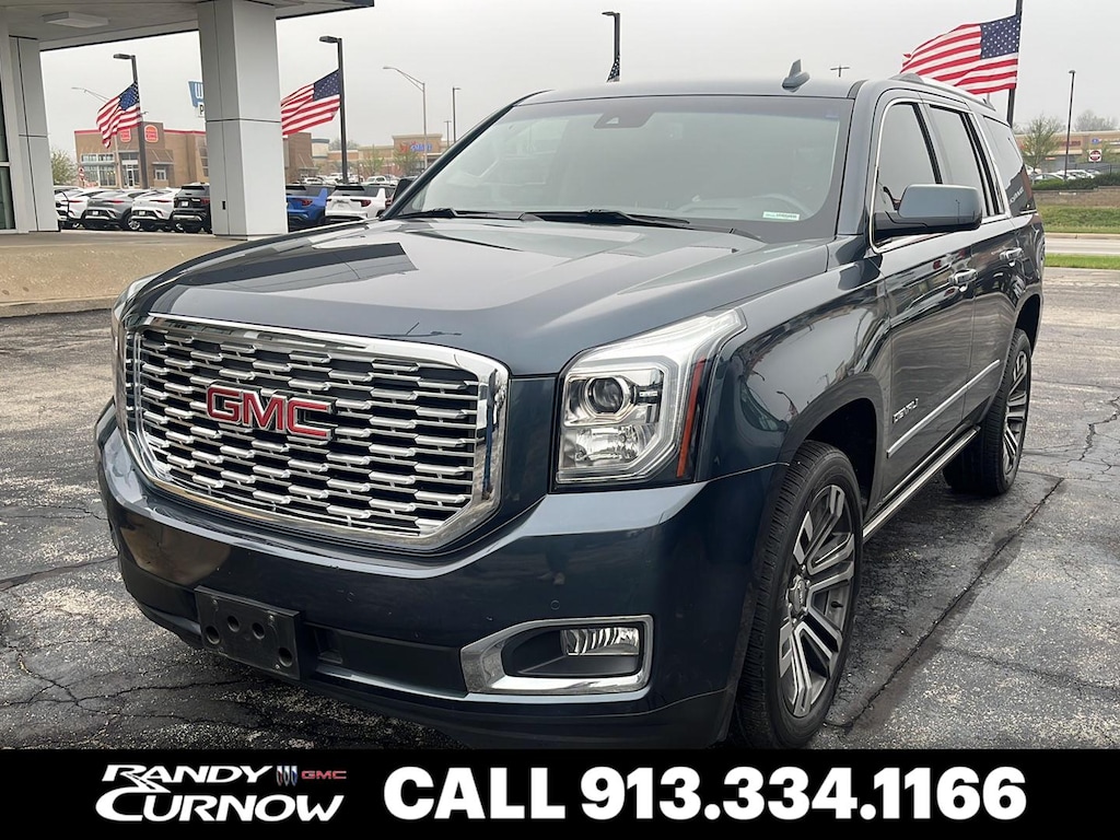 This 2019 GMC Yukon Denali, has a Dark Sky Metallic exterior with a Jet Black interior. Call us at 913-601-5486 and reference stock Number 112639A for further details. IMPORTANT PACKAGE INFORMATION: Open Road PackagePower Tilt-Sliding Sunroof with Express-Open/closeRear Seat Blu-Ray/DVD Entertainment SystemEnhanced Security PackageTheft-Deterrent Alarm SystemVehicle Inclination SensorVehicle Interior Movement SensorDenali Ultimate Package ($7,055 value)Power Retractable Assist Steps with Perimeter LightingWheel Locks22" X 8.5" Bright Aluminum WheelsPreferred Equipment Group 5SAMemory PackageFull-Feature Reclining Bucket SeatsPassive Entry SystemPower Release 2nd Row Bucket SeatsPush Button Keyless StartBlack Assist Steps with Chrome StripInside Rearview Auto-Dimming Mirror3.23 Rear Axle RatioAM/FM/SiriusXM Radio with Navigation4-Wheel Antilock Disc BrakesPower-Adjustable Pedals For Accelerator and BrakeIntegrated Trailer Brake ControllerHigh-Capacity Air CleanerWireless ChargingElectronic 10-Speed Automatic Transmission with OverdrivePower Tilt and Telescopic Steering ColumnBose Active Noise Cancellation2-Speed Electronic Autotrac Active Transfer Case5 Auxiliary 12-Volt Power OutletsHands Free Power Programmable Rear LiftgateRear Cross Traffic AlertUniversal Home RemoteLane Change Alert with Side Blind Zone AlertHeated Leather-Wrapped Steering WheelEnhanced Driver Alert PackageAdvanced Adaptive Cruise Control4-Wheel Disc and 4-Wheel VAC Power Antilock BrakesForward Automatic Braking Safety and Security The vehicle is equipped with a system that senses, and then prepares, the vehicle and/or occupants, for an impending forward collision. The vehicle is equipped with a camera that displays an image of the area behind the vehicle on an interior display. An active lane departure system alerts the driver of unintended movement of the vehicle out of a designated traffic lane and automatically maintains the vehicle's position within that lane.Technology and Telematics Without the need for a manufacturer specific app to be installed on the smart device, the vehicle infotainment system can access and control functions of a smart device physically plugged-into the vehicle. Mobile devices can wirelessly connect to the internet through the vehicle's private mobile network. OTHER NOTABLE FEATURES AND OPTIONS YOU SHOULD KNOW ABOUT: EMISSIONS, FEDERAL REQUIREMENTS, ENGINE, 6.2L ECOTEC3 V8, TRANSMISSION, 10-SPEED AUTOMATIC, REAR AXLE, 3.23, WHEELS, 22" X 8.5" (55.9 CM X 21.6 CM) BRIGHT ALUMINUM, TIRES, P285/45R22, ALL SEASON, BLACKWALL, SOLID PAINT, DARK SKY METALLIC, SEATS, FRONT BUCKET WITH PERFORATED LEATHER-APPOINTED, JET BLACK, PERFORATED LEATHER-APPOINTED SEAT TRIM, SEATS, SECOND ROW BUCKET, POWER RELEASE, AUDIO SYSTEM, 8" DIAGONAL COLOR TOUCH SCREEN NAVIGATION WITH GMC INFOTAINMENT SYSTEM, DENALI ULTIMATE PACKAGE, OPEN ROAD PACKAGE, ENHANCED SECURITY PACKAGE, BRAKES, 4-WHEEL ANTILOCK, 4-WHEEL DISC, VAC POWER WITH BRAKE ASSIST, LPO, WHEEL LOCKS (DEALER-INSTALLED), SUNROOF, POWER, TILT-SLIDING, ASSIST STEPS, POWER-RETRACTABLE, LICENSE PLATE FRONT MOUNTING PACKAGE, ENTERTAINMENT SYSTEM, REAR SEAT BLU-RAY/DVD, LPO, ALL-WEATHER FLOOR LINER PACKAGE, ADAPTIVE CRUISE CONTROL - ADVANCED, FORWARD AUTOMATIC BRAKING, THEFT-DETERRENT ALARM SYSTEM, SENSOR, VEHICLE INCLINATION, SENSOR, VEHICLE INTERIOR MOVEMENT SERVING OUR FRIENDS AND NEIGHBORS IN KANSAS CITY At Randy Curnow Buick GMC, we're more than just a car dealership in Kansas City. We're also members of the greater Olathe, Overland Park, Summit and Leavenworth communities, who work and live here just like you, and we want only what's best for our neighbors. We strive to support community initiatives and events, and we're committed to delivering the best customer service around, from new Buick and GMC sales, to used vehicles, to finance and service. We provide the best of the best to all our customers. FINANCING OPTIONS: Take advantage of our attractive low-rate financing options. Our access to