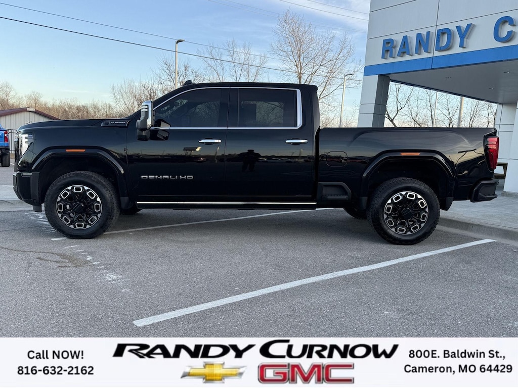This 2025 GMC SIERRA 2500 , has a BLACK exterior with a interior. Call us at 816-632-2162 and reference stock Number U8043 for further details. No Accidents! IMPORTANT PACKAGE INFORMATION: Preferred Equipment Group 5SBSiriusXM with 360L Trial SubscriptionPower Sliding Rear Window with DefoggerFront Bucket SeatsPower Front Passenger Windows with Express Up/downDeep-Tinted GlassKeyless Open and StartRear Wheelhouse LinersPush Button StartRemote Vehicle Starter SystemElectric Rear-Window DefoggerFront Rain-Sensing WipersPower SunroofSpray-On Pickup Bedliner with GMC LogoTechnology PackageFloor-Mounted Centre ConsoleSignature Denali Ultimate Grille in Vadar Chrome3.42 Rear Axle RatioSafety Alert SeatAM/FM Stereo with Premium GMC Infotainment SystemWireless ChargingHeated Driver and Front Outboard Passenger SeatsHeated 2nd Row Outboard Seats120-Volt Bed Mounted Power Outlet120-Volt Instrument Panel Power OutletVentilated Driver and Front Passenger SeatsDuramax 6.6L Turbo-Diesel V8 EngineAllison 10-Speed Automatic TransmissionManual Tilt-Wheel/telescoping Steering Column2-Speed Active Transfer CaseSierra HD Pro SafetyWireless Phone ProjectionProGrade Trailering SystemTrailer Tire Pressure Monitor Sensors20" Ultra-Bright Machined Aluminum WheelsLT275/65R20 AT BW TiresFull Grain Leather Seat TrimTrailer Cam Provisions and Trailer Viewing SoftwareLED Smoked Amber Roof Marker Lamps2 Charge/data USB Ports Inside Centre Console2 USB Ports2 Charge-Only Rear USB PortsUltrasonic Front and Rear Park AssistOnStar Services CapableLED Cargo Area LightingRear Cross Traffic AlertUniversal Home RemoteSteering Wheel Audio ControlsTrailer Side Blind Zone AlertBose Premium Series 12-Speaker SystemUnauthorized Entry Theft-Deterrent SystemHD Surround VisionBed View Camera with Two Trailer Camera ProvisionsX31 Off-Road Package Safety and Security The vehicle is equipped with a system that senses, and then prepares, the vehicle and/or occupants, for an impending forward collision. The vehicle constantly monitors the roadway in front of the vehicle and identifies and tracks pedestrians on an interior display. If the system determines a likely impact, it will automatically take preventative steps to avoid hitting the pedestrian. The vehicle is equipped with a camera that displays an image of the area behind the vehicle on an interior display.Technology and Telematics Android Auto/Apple CarPlay smart device wireless mirroring Mobile devices can wirelessly connect to the internet through the vehicle's private mobile network. OTHER NOTABLE FEATURES AND OPTIONS YOU SHOULD KNOW ABOUT: SERVING OUR FRIENDS AND NEIGHBORS IN CAMERON AND THE SURROUNDING AREA! At Randy Curnow Chevrolet GMC, we strive everyday to provide a car-buying and -servicing experience that's truly unparalleled. We offer incredibly low prices on our Chevrolet, GMC models for sale, while also giving back to the community that supports us. Hurry down to our Chevy dealership in Cameron, MO, now to see what we have in store for you. No matter if you're shopping for a new Chevy truck, GMC SUV or Buick luxury car, you'll find what you're looking for on our lot. Our nearby MO GMC dealership offers truly massive new, used and Certified Pre-Owned car inventories for you to browse. What's more, if you want to save on the new Buick SUV or Chevrolet model that you have your eye on, make sure to check out our new GMC lease specials and finance offers. We're always updating our Buick lease and Chevy financing incentives to include all your favorite vehicles, so stop by Randy Curnow Chevrolet GMC today! FINANCING OPTIONS: Take advantage of our attractive low-rate financing options. Our access to various Credit Unions and National Banks can provide financing for most credit levels. We can tailor a finance package to fit your needs. To get started, complete our secure online credit application.